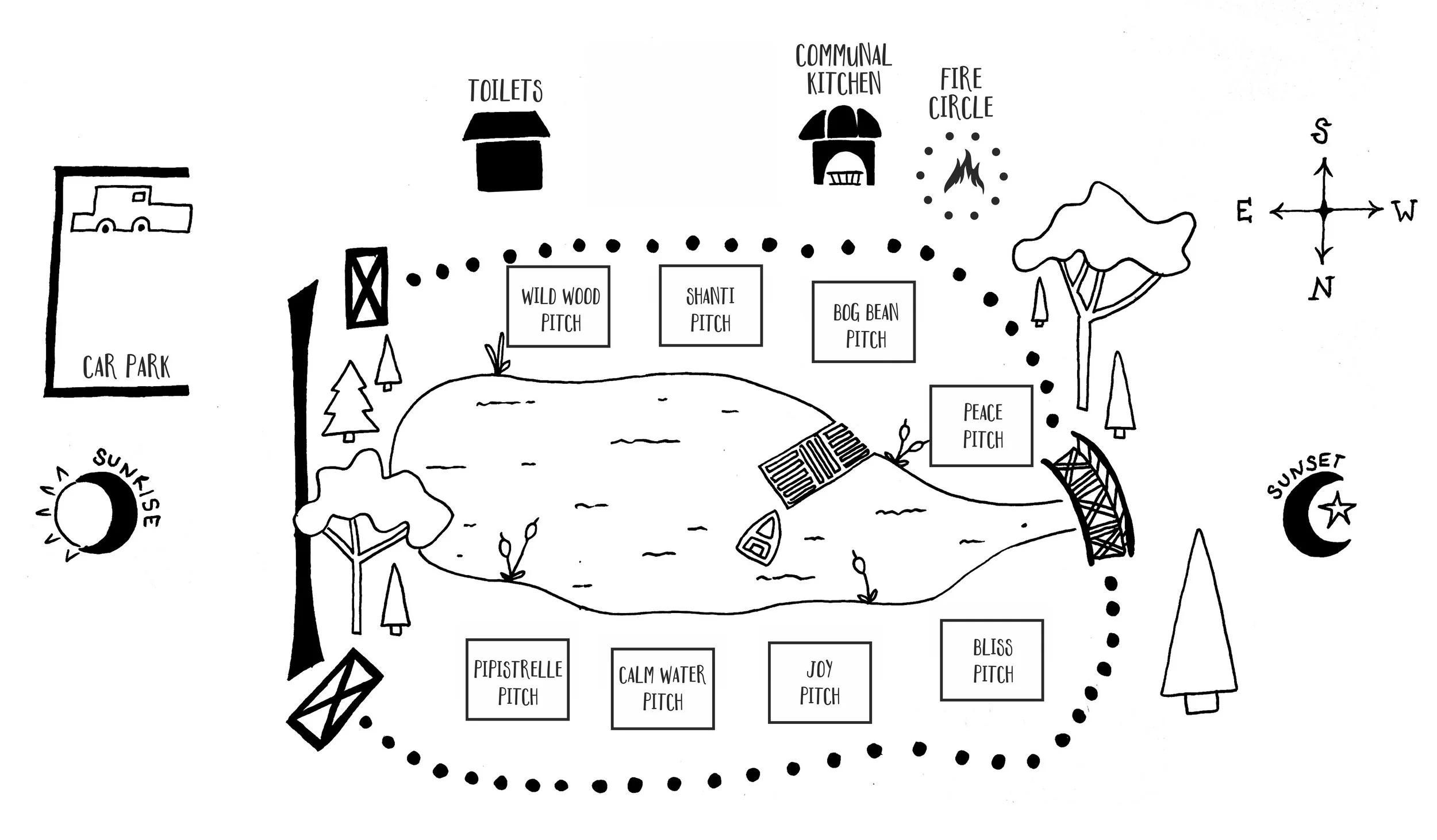 All our pitches encircle Calm Water Lake, which is an acre in size. If you would like to visit Barefoot and Bower, our pitches are large and can accommodate friend/family groups, from one-night stays.